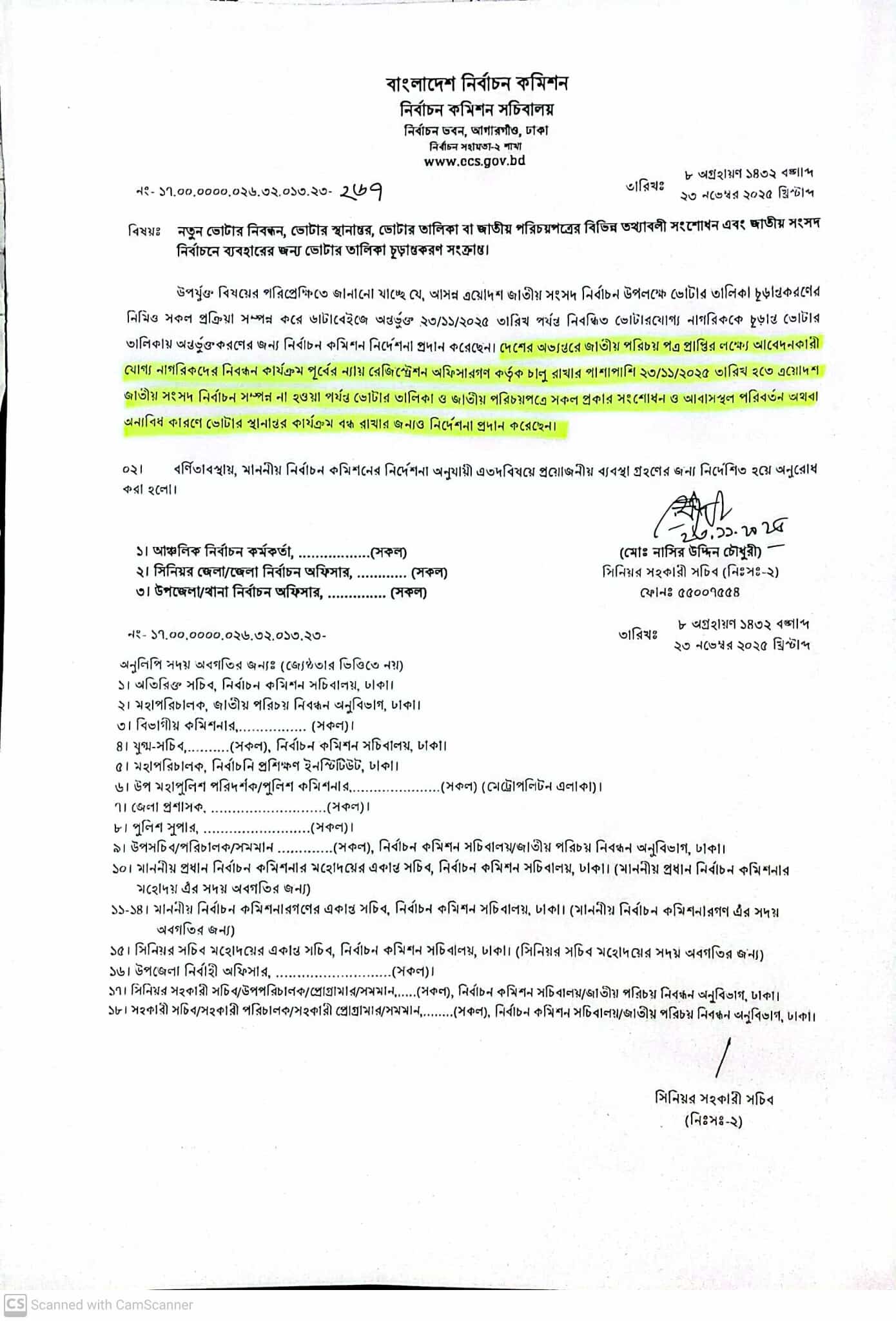 | ১ | জাতীয় পরিচয়পত্রে সকল প্রকার সংশোধন ও আবাসস্থল পরিবর্তন/ভোটার স্থানান্তর বন্ধ প্রসঙ্গে | | ২৫-১১-২০২৫ | দেখুন | |