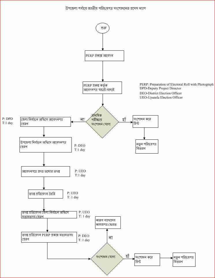 উপজেলা পর্যায়ে জাতীয় পরিচয় পত্র সংশোধনের প্রসেস ম্যাপ